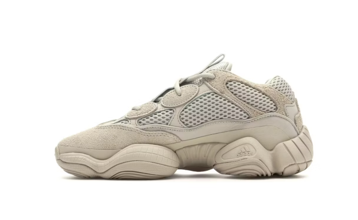 La adidas Yeezy 500 Blush est l’une des premières et des plus iconiques versions de la gamme Yeezy 500, signée Kanye West. Sa silhouette distinctive combine influences rétro et design avant-gardiste, avec une tige en mesh beige clair renforcée par des empiècements en daim et cuir premium.